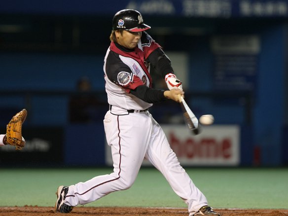5番 中村紀 遊ゴ 初球の変化球を打たせた打球を、ショート・西岡がワンバウンドで落ち着いて処理。  |