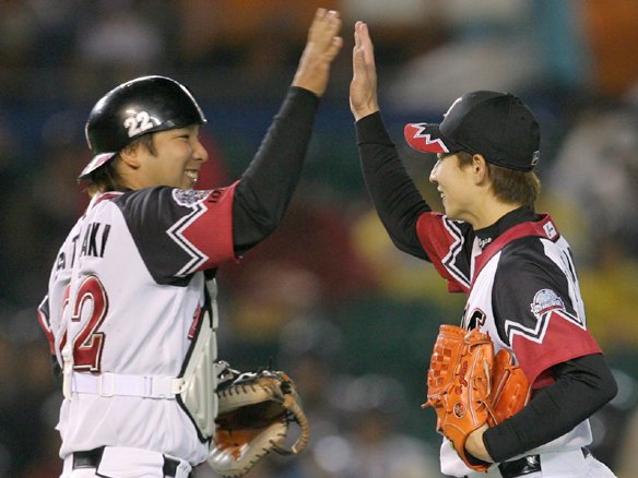 8番 里崎 右飛 初球のストレートを果敢に打ちにいくも振り遅れ、ライト線際に上がった打球を宮出がゆっくり落下点に入ってキャッチ。  |