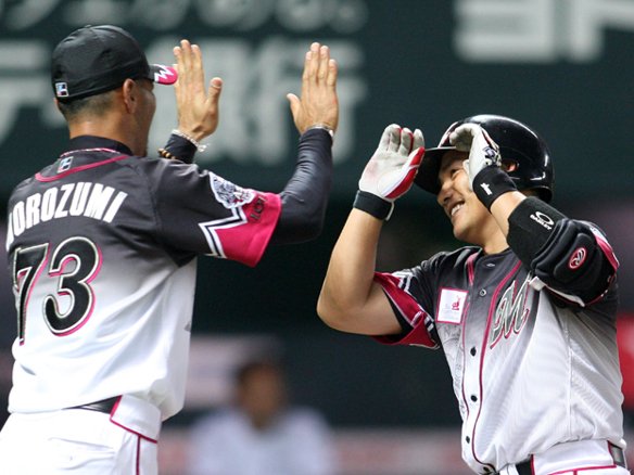 福浦の2ベースヒット、井口のタイムリー3ベースヒットでマリーンズが幸先よく先制しました!  |