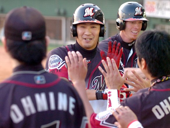 この回2死からベニー、今江の連続2ベースヒットでさらに1点追加!この試合初めてタイムリーで得点を奪い、完封ペースの快投を続ける大嶺に、更なる追加点をプレゼントしました!  |
