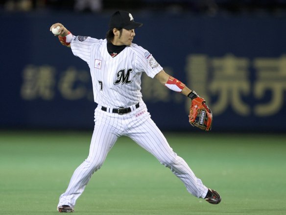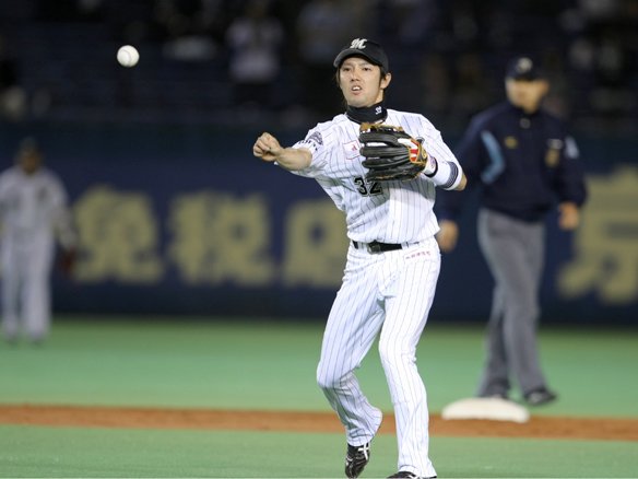 投手 涌井 1番 西岡 二ゴ 2-1からアウトコースのストレートを引っかけ、二遊間への打球。セカンド・片岡がうまく回り込んで捕球し、そのままジャンピングスローで1塁送球・・・。  |