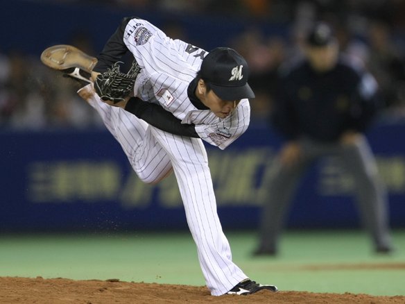 投手 渡辺俊 渡辺俊、1死からヒットを許すも、里崎の好守もありこの回も無失点で抑えました!  |