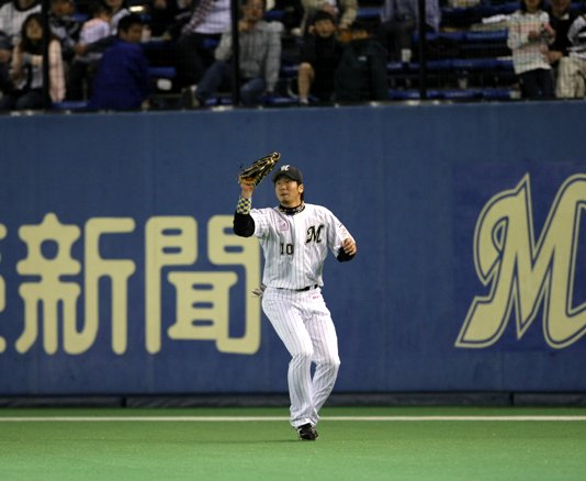 1死から西岡が四球を選ぶも、続く福浦が併殺に倒れ、この回も涌井の前に得点を奪えず・・・。  |