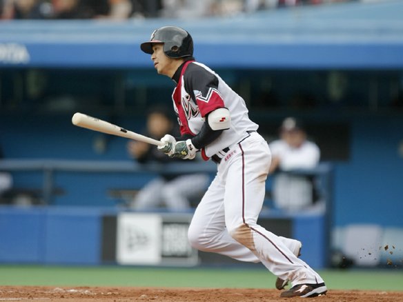 3番 サブロー 中安 1-0から138キロ外角寄りのストレートを素直に弾き返した!  |