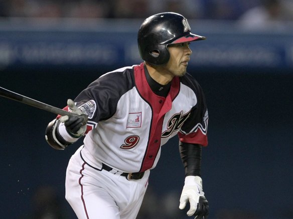 8番・福浦、一二塁間を抜くヒットを放つ!
