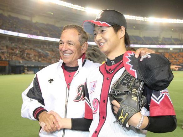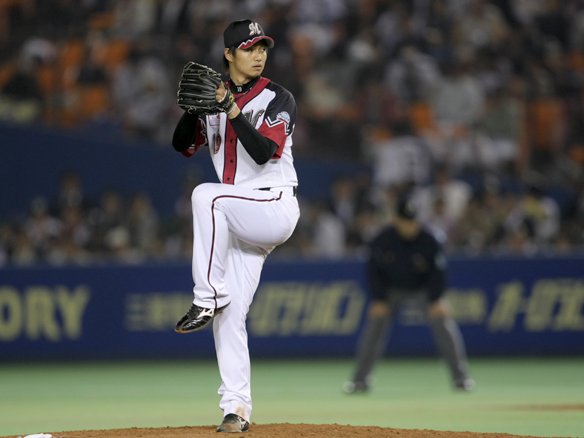 唐川、2死から走者を出しましたが、落ち着いて後続を断ちゲームセット。 チャンスを作りながらもあと1本が出ない展開が続く中、8回に今江の決勝タイムリーが飛び出し、決着を付けました!! 唐川は9回を121球、被安打5、奪三振10、無四球、1失点という申し分ない内容で、2試合連続の完投で4勝目、そして嬉しい交流戦初勝利!チームも、幸先良く交流戦の初戦をモノにしました!!  |