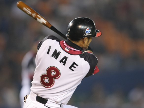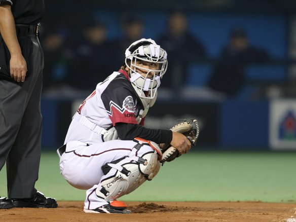 6番 里崎 左飛 1-0から高めの球を、ライナーでレフトに弾き返した。しかし、ラインドライブがかかって、レフト・内川が定位置より少し下がってキャッチ。  |