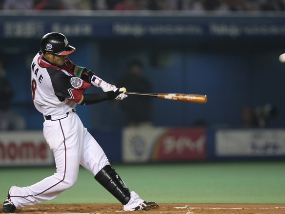 7番 バーナムJr. 二ゴ 0-1から外角のストレートを叩くと、打球は大きく弾んでファースト・佐伯の頭を越えるも、セカンド・北川が回り込んで、ベースカバーに入ったピッチャー・マストニーに送球。1塁ランナー・里崎は2塁へ進塁。  |
