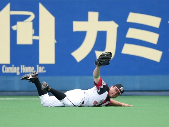 投手 成瀬 6番 畠山 左飛 1-1からストレートを打った打球は、フラフラと舞い上がり、左中間へ落ちそうな当たり。しかし、レフト・バーナムJr.が懸命に追って、最後はダイビングキャッチ!ファインプレー!  |