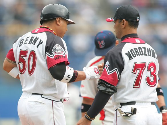 7番 ベニー 四球 フルカウントから変化球が内側に外れた!  |