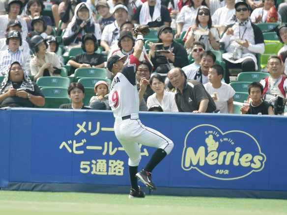 7番 関本 一邪飛 0-1から高めのカットボールを打ち上げた。この打球を、ファースト・福浦がファールゾーンで捕球。 |