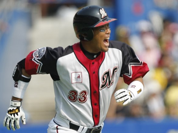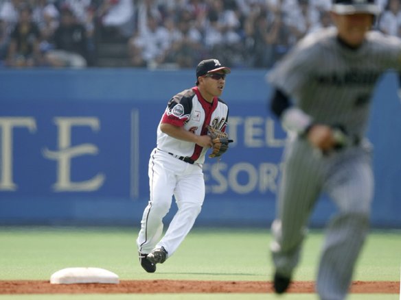 6番 里崎 左安 0-3から内角のカットボールを思い切り引っ張った!打球は三遊間を破り、レフト前へ!この間に2塁ランナー・井口が生還!!3対0。 ![]() 3