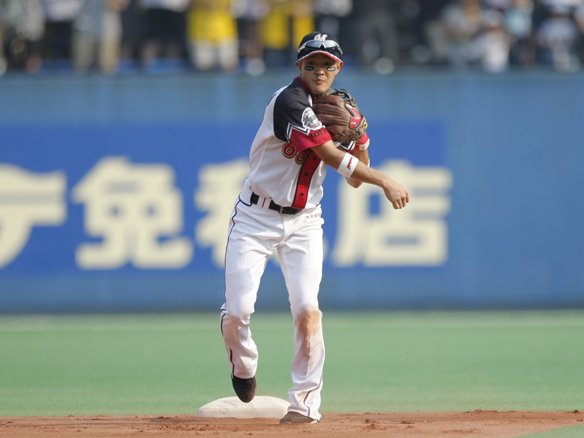 3番 新井 三ゴ 初球、高めのフォークを打たせた。この打球をサード・今江が上手くさばき1塁へ送球。 |