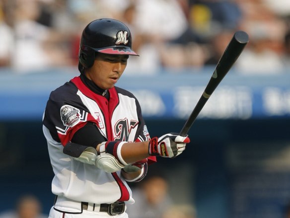 4番 井口 死球 1-2から内角高めのストレートが井口のユニホームをかすめた。 |