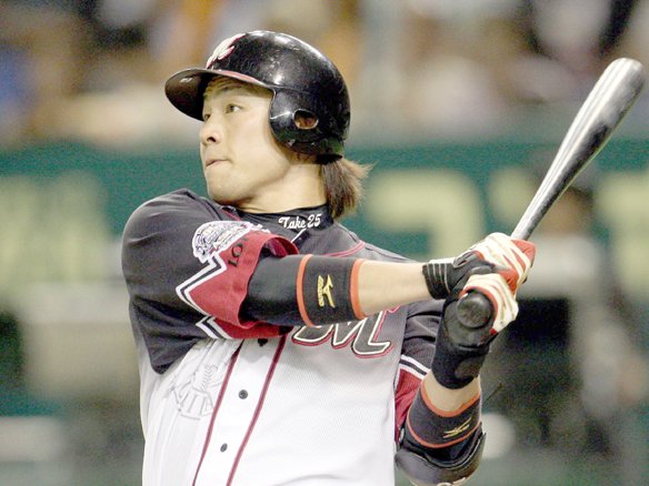 投手 東野 4番 井口 左中本 初球、低めのカーブを強振! 打球はグングンと伸び、左中間スタンド前列に飛び込む11号ソロホームランでさらに1点を追加し、5対1。 井口のホームランは5/30以来、14試合ぶり。 ![]() 1