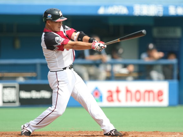 9番 金子誠 左翼二 1-3から甘く入った変化球を引っ張り、打球はレフト左を抜けていった・・・。  |