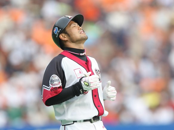 投手 川崎 3番 稲葉 左翼二 初球をうまくとらえられ、打球は大きく空いていたレフト左へ抜けていった・・・。  |