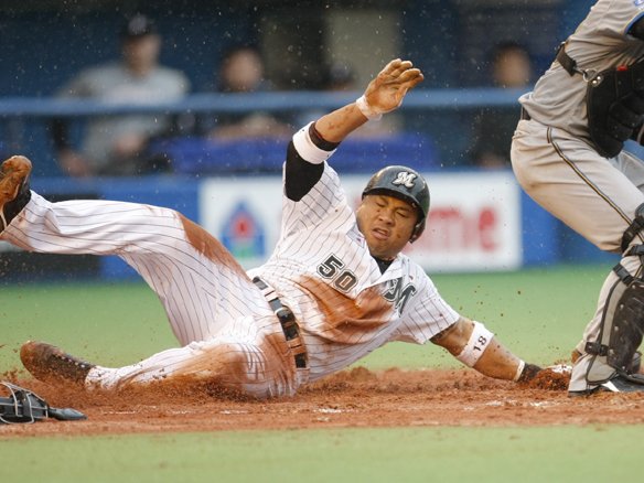 投手 スウィーニー 2番 福浦 四球 フルカウントからアウトコース、わずかに外れるストレートを見極めた!  |