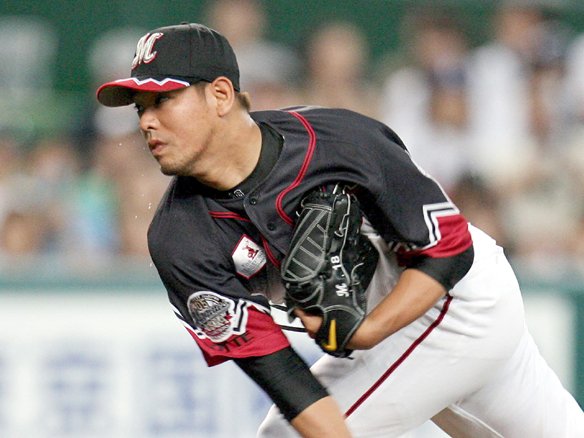 投手 清水直 投手 清水 1番 片岡 右飛 初球のフォークを打たせて、セカンド・井口への平凡なゴロ。  |