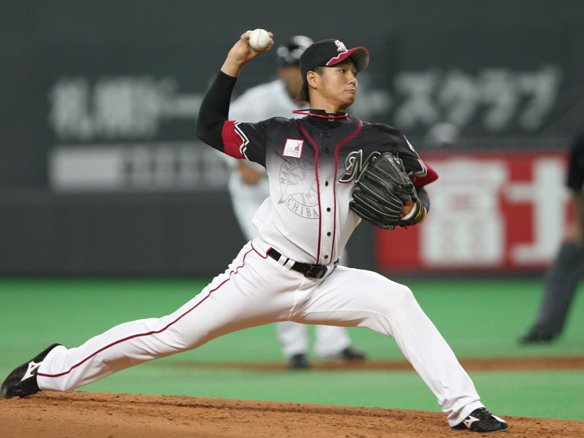 プロ入り初の札幌ドームでの登板で、通算10勝目を狙う唐川。初回を3者凡退に仕留め、順調な立ち上がりを見せました! |