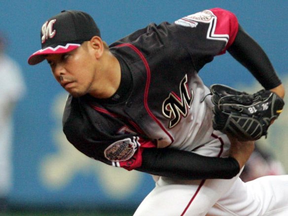 5番 ラロッカ 二ゴ 0-1からの2球目、アウトコースのフォークボールでタイミングを外して打たせた打球は、セカンド・井口が回り込んでさばいた!! |