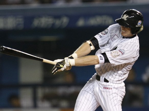 5番 サブロー 空三振 2-0からの3球目、インコース低めのストレートにバットが合わず・・・。  |