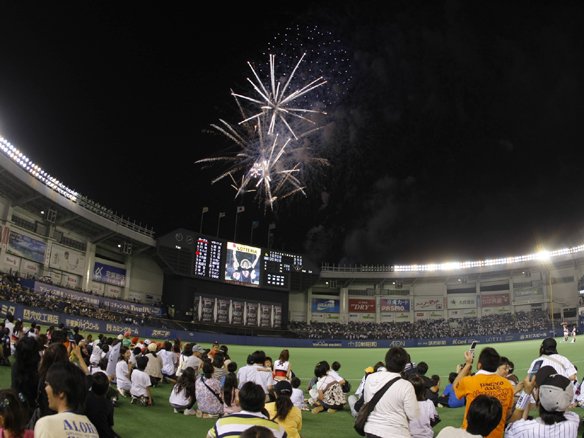 ここでバレンタイン監督がベンチから出て、1塁は松中の足よりも送球の方が早く、アウトではないかと塁審のもとに向かいますが、判定は覆らずに試合再開。  |