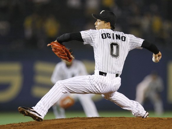 投手 荻野忠 4番 松中 空三振 2-3からの7球目、インコース高めのカットボールで空振りを奪った!!  |