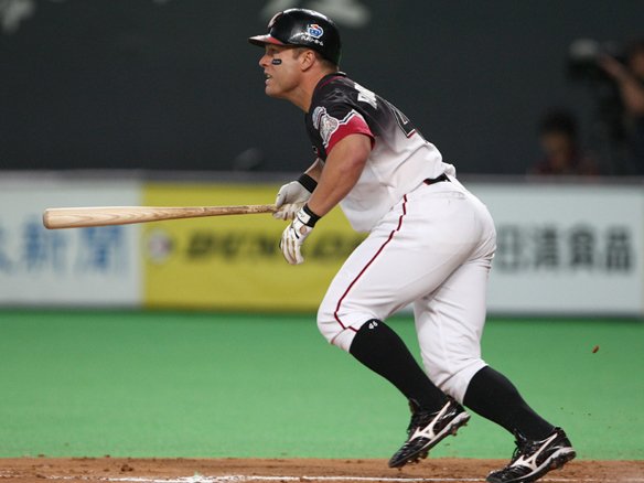 5番 サブロー 二ゴ 0-1からアウトコースのスライダーを逆方向へ弾き返した打球は、セカンド・田中賢が回り込んでさばいた。2塁ランナー・大松を3塁へ進める進塁打となった。  |