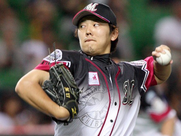投手 成瀬 5番 多村 一邪飛 2-1から低めのチェンジアップで打ち上げさせ、ファースト・福浦が1塁線からわずかにファールゾーンに出て捕球した。  |