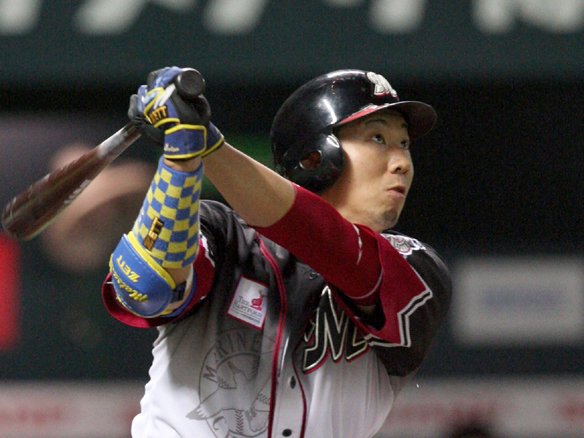 7番 福浦 右安 0-2から甘く入ったストレートを引っ張った打球は、一二塁間を破ってライト前へ抜けた。  |