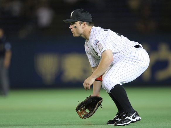 3番 サブロー 四球 フルカウントからの6球目、高く外れたカーブを見極めた。  |