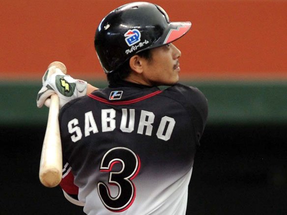 6番 G.G.佐藤 中飛 初球のインコースへのストレートで詰まらせ、センター・サブローが前進してキャッチ。  |