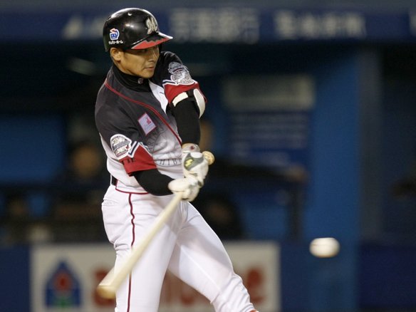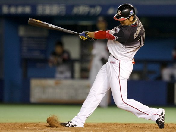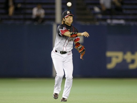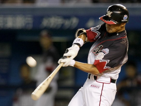 6番 福浦 右飛失 1-2から真ん中のチェンジアップを振り抜いた打球は、前進したライト・稲葉が一度はグラブに入れるもボールを落球した。記録はライト・稲葉のエラー。  |