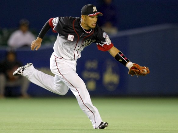 4番 高橋 遊ゴ 2-1からアウトコース低めに落ちるスライダーを引っ張られるが、三遊間でショート・西岡が逆シングルで捕球。素早く体をひねり2塁ベースカバーに入ったセカンド・井口へジャンピングスローして1塁ランナー・稲葉がフォースアウト。井口は1塁に転送するが判定はセーフ・・・。  |