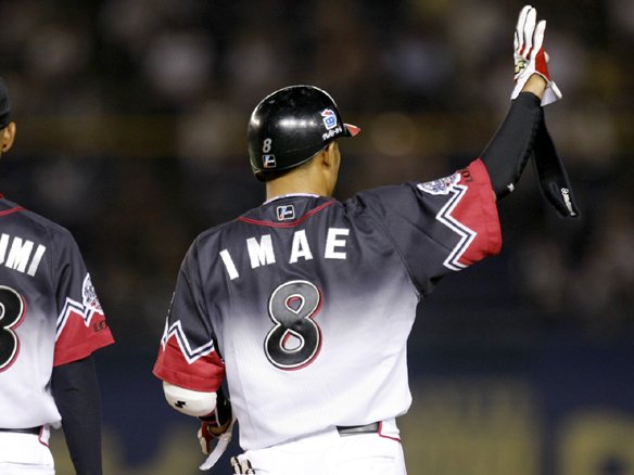 里崎がライト前ヒットを放ち、ファンの声援に応える!!