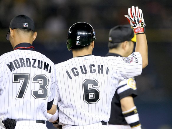 前の試合から通算すると3打席連発!! 井口が2本目のアーチを放ってリードを3点に広げました!!  |