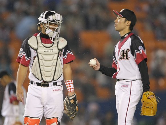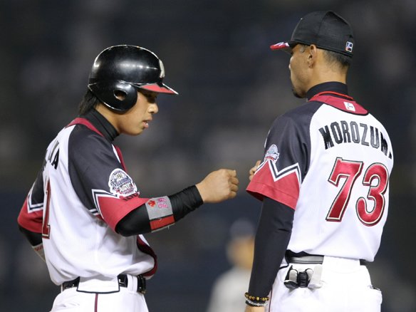 【千葉ロッテ選手交代】 1塁ランナー・福浦→代走・早川 8番・今江→代打・塀内 |