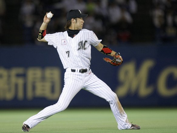 投手 西口 5番 里崎 遊ゴ 初球、アウトコース低めのストレートを打ったが、打球はショート・中島の正面を突いてしまった。 |