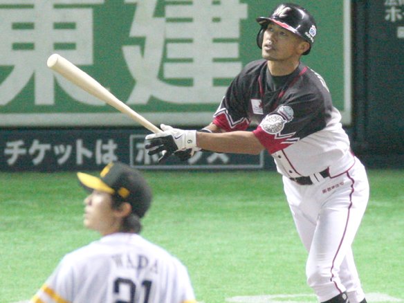 8番 角中 空三振 2-2からアウトコースのストレートにタイミングが合わず・・・。 |