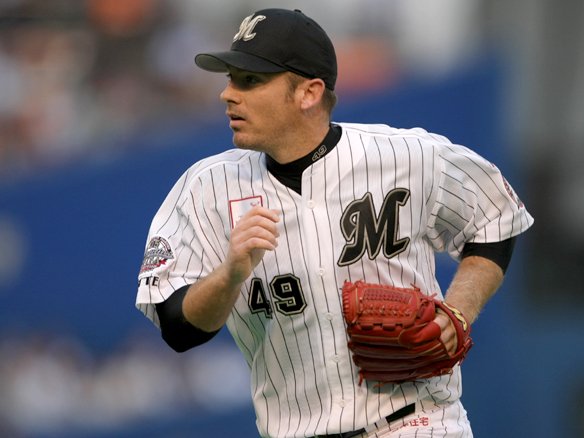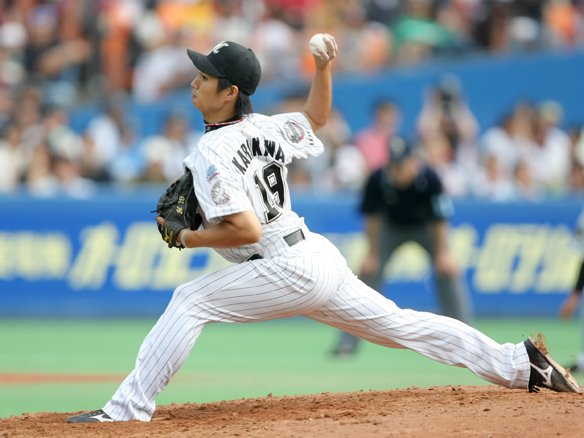 5番 里崎 見三振 フルカウントからの6球目、アウトコース低めにコントロールされた150キロのストレートに手が出ず・・・。前の回から6者連続三振となってしまった。 |
