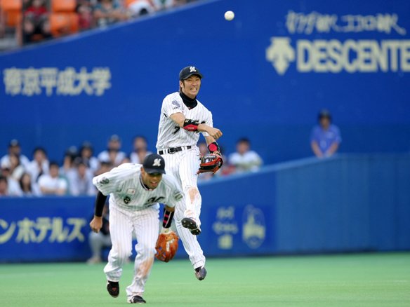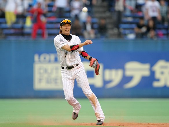 3番・一輝のショートゴロを西岡がジャンピンスローでアウト!!