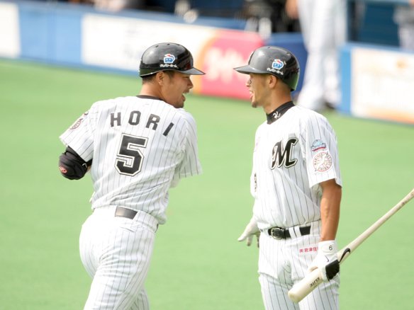 リードオフマン・西岡の2ベース、堀の進塁打でチャンスを作ると、福浦のファールフライで西岡が判断良くホームを陥れ、さらに1点を追加しました! そつのない野球で価値ある追加点を奪いました! |