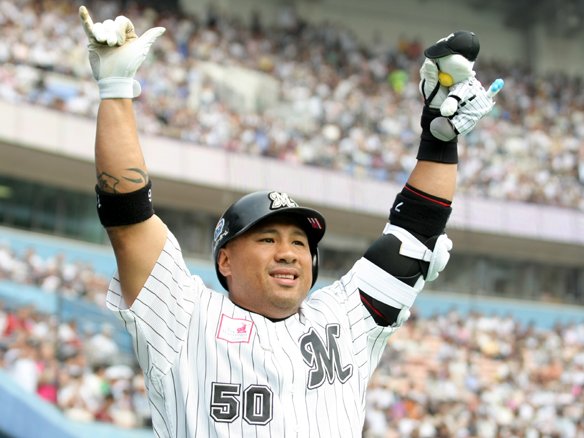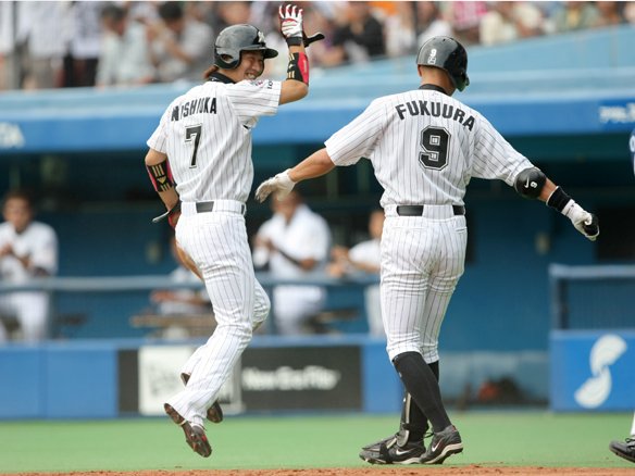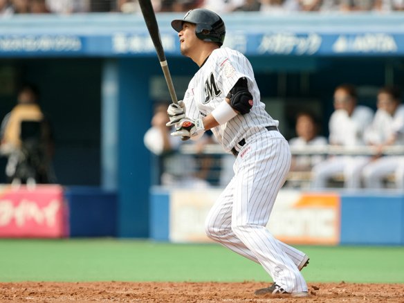 3番 福浦 右中二 2-2からの6球目、インコース高めの変化球を引っ張ると打球は右中間へ! ボールが転々としている間に2塁ランナー・堀が生還! 福浦はスタンディングで2塁到達! 7対1! ![]() 8