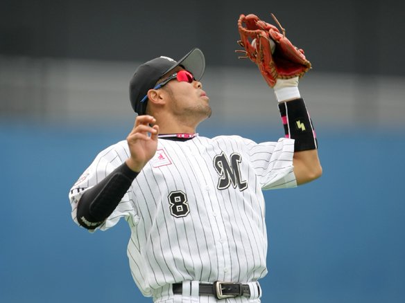 9番 山崎 捕邪飛 0-1からのストレートで打ち上げさせた! キャッチャー・里崎の後方へ上がったファールフライを最後はフェンスにぶつかりながらキャッチ! ナイスプレー! |