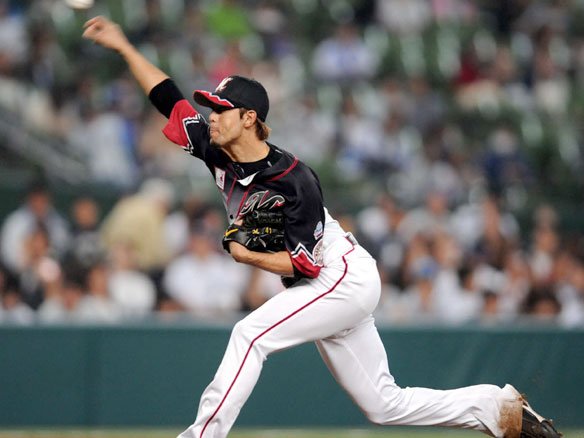 小林宏は1死から中村に2ベースを許しましたが、ファースト・福浦のファインプレーもあって後続を打ち取り、無失点で抑えました! |