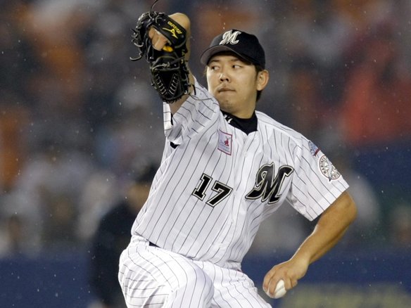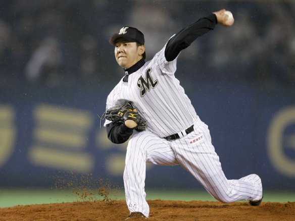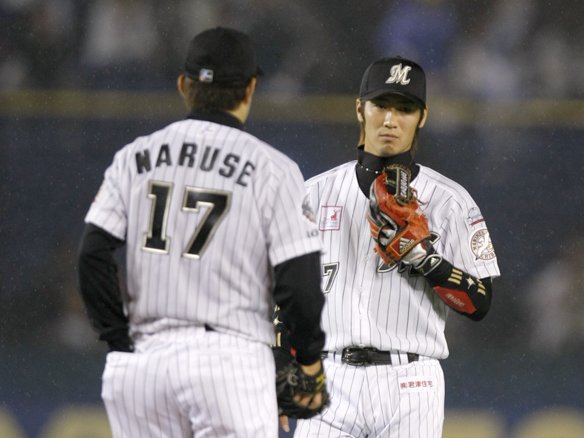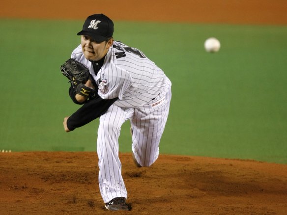 6番 リンデン 捕邪飛 初球、アウトコースのチェンジアップを打ち上げさせ、バックネット際でキャッチャー・里崎が落ち着いてキャッチした! |