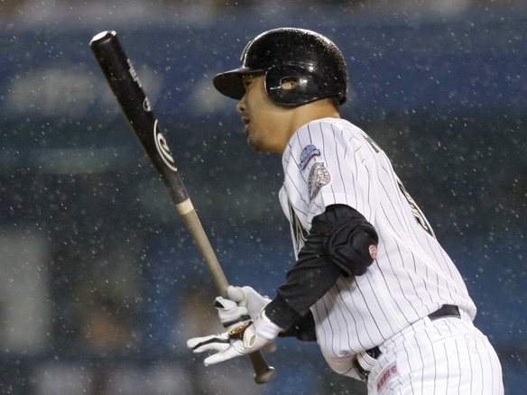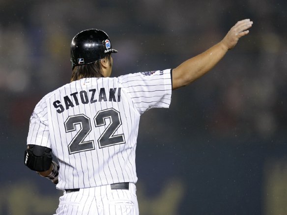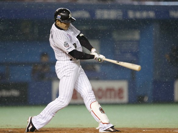 投手 岩隈 8番 里崎 中安 0-1から真ん中のストレートを弾き返し、打球はセンター・聖澤の前で大きく弾んだ! |