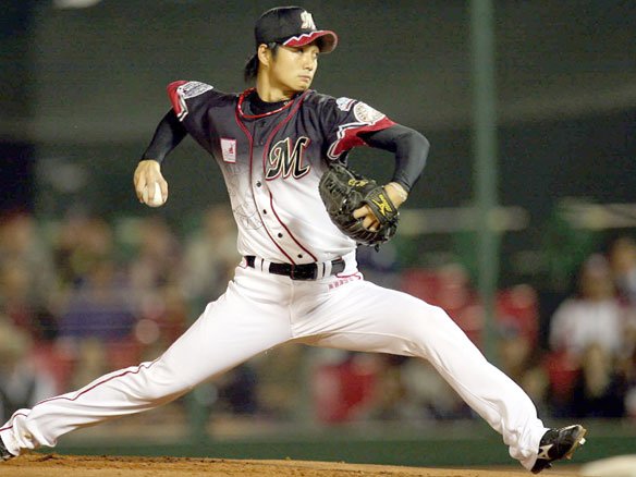 5番 里崎 中飛 2-1からの4球目、真ん中低めのフォークボールを弾き返した打球は左中間方向に大きく上がったが、伸びが足りずセンター・聖澤にキャッチされてしまった・・・。 |