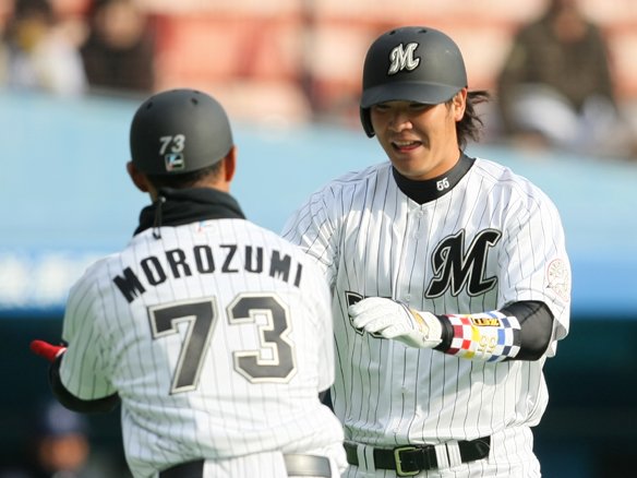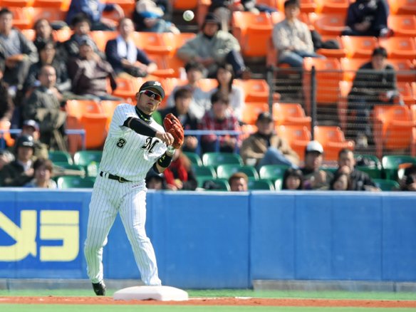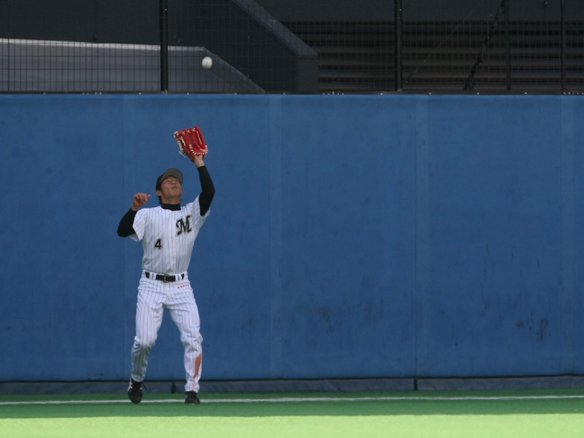 8番 里崎 遊ゴ 1-2から、アウトコース低めのスライダーを引っ掛けてしまい、打球はショート・藤田の正面へ。これを藤田にさばかれてしまった。 |